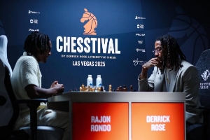体育资讯07月14日讯 近日,“国际象棋节”比赛在拉斯维加斯进行,前NBA球星隆多和罗斯到场进行对垒。